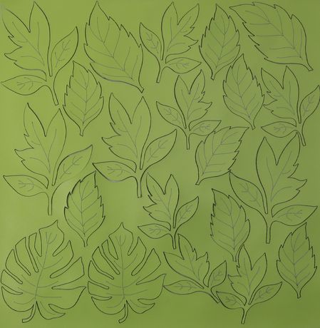 Foglio di eco pelle pretagliato con 21 foglie in varie forme e dimensioni.