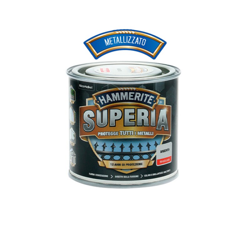 Hammerite Superia è uno smalto di nuova generazione, a base acqua, protettivo e decorativo per il trattamento di metalli ferrosi e non ferrosi (acciaio, alluminio, lamiera zincata); formulato per l’applicazione diretta sulla ruggine e su qualsiasi tipo metallo, senza necessità di utilizzare un primer,consente di realizzare una finitura protettiva di lunga durata (fino a 12 anni, per lavori eseguiti a regola d’arte, applicando 100