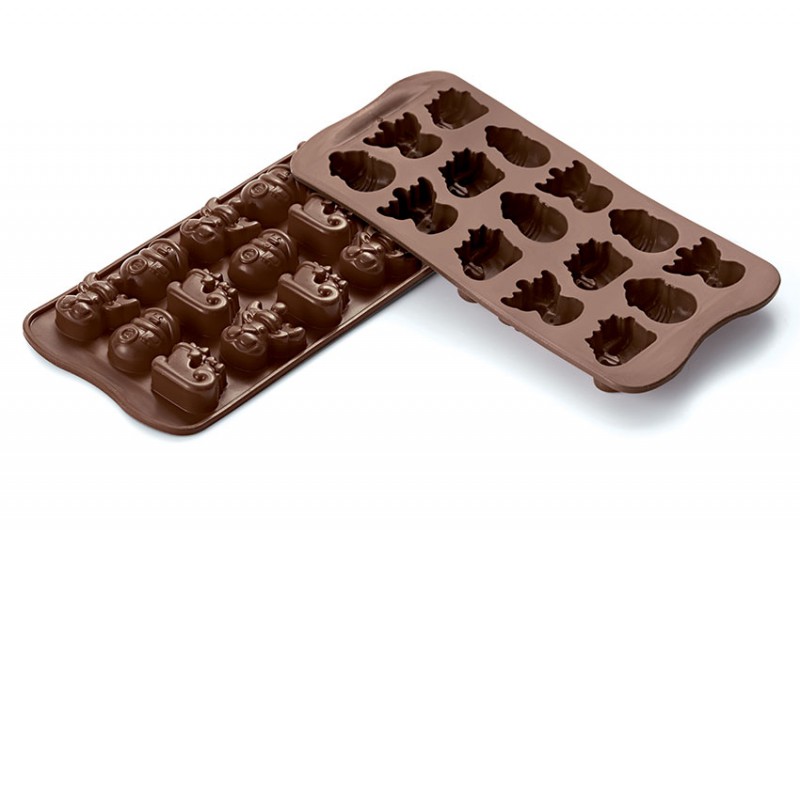 Stampo antiaderente per dolci in silicone alimentare per realizzare soggetti natalizi: renna, slitta e pupazzo di neve. Può essere utilizzato in forno, microonde, frigo e freezer. Ideale anche per polvere di ceramica, gesso, fimo, resine, sapone o cera.