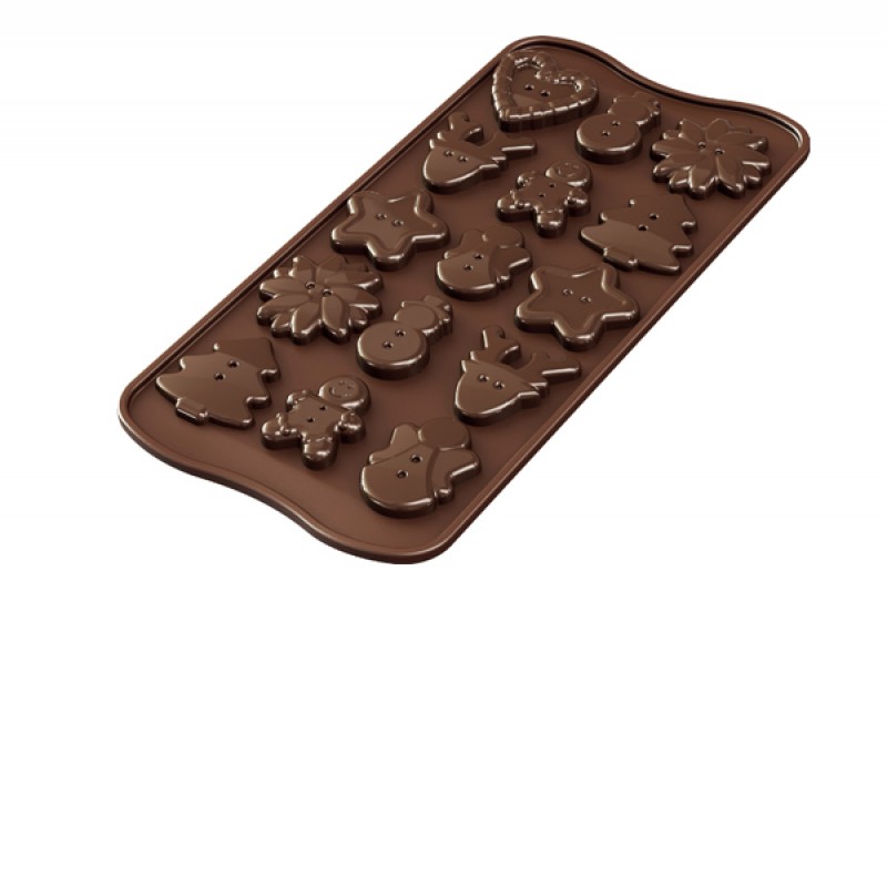 Stampo antiaderente per dolci in silicone alimentare per realizzare bottoni natalizi. Può essere utilizzato in forno, microonde, frigo e freezer. Ideale anche per polvere di ceramica, gesso, fimo, resine, sapone o cera.