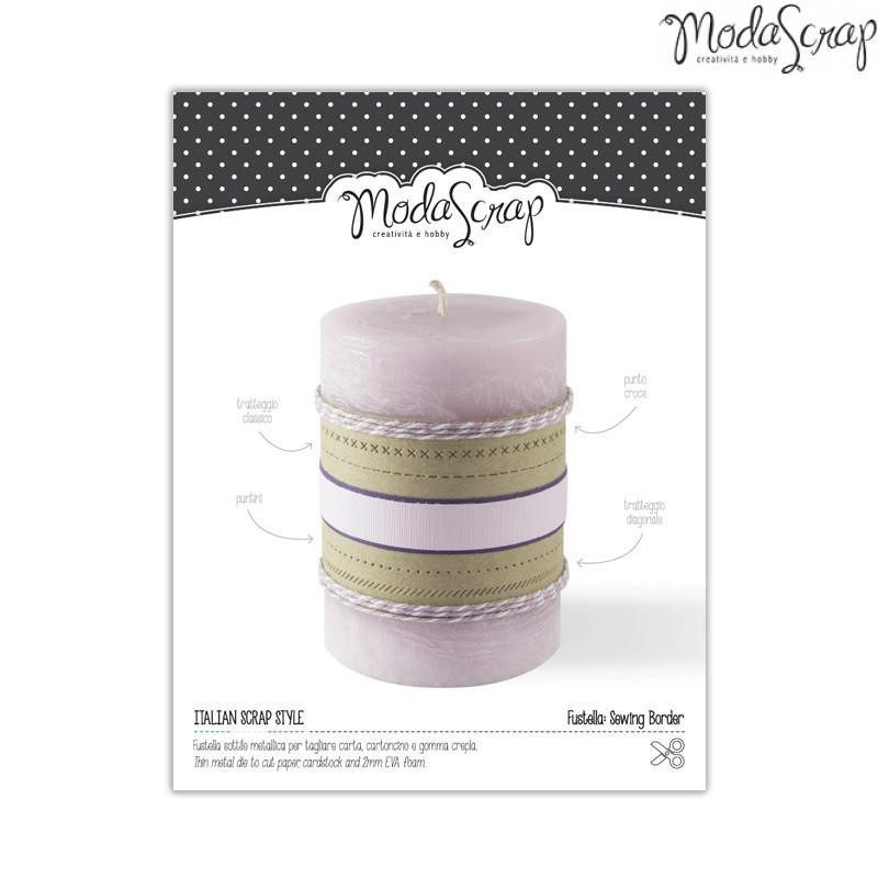 La Fustella Sewing Border è composta da 4 tipi diverse di cuciture: tratteggio – puntini – crocette e diagonale.