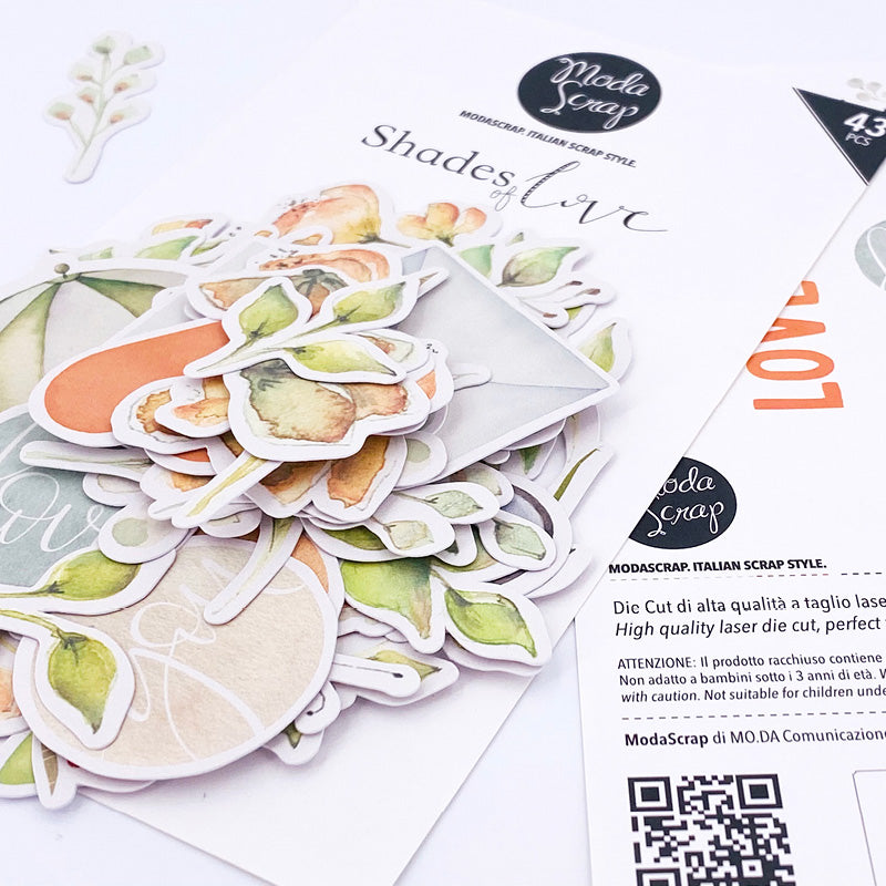 planner ed ogni tipo di progetto. La confezione include 43 die cuts coordinati alla collezione Shade Of Love ModaScrap.